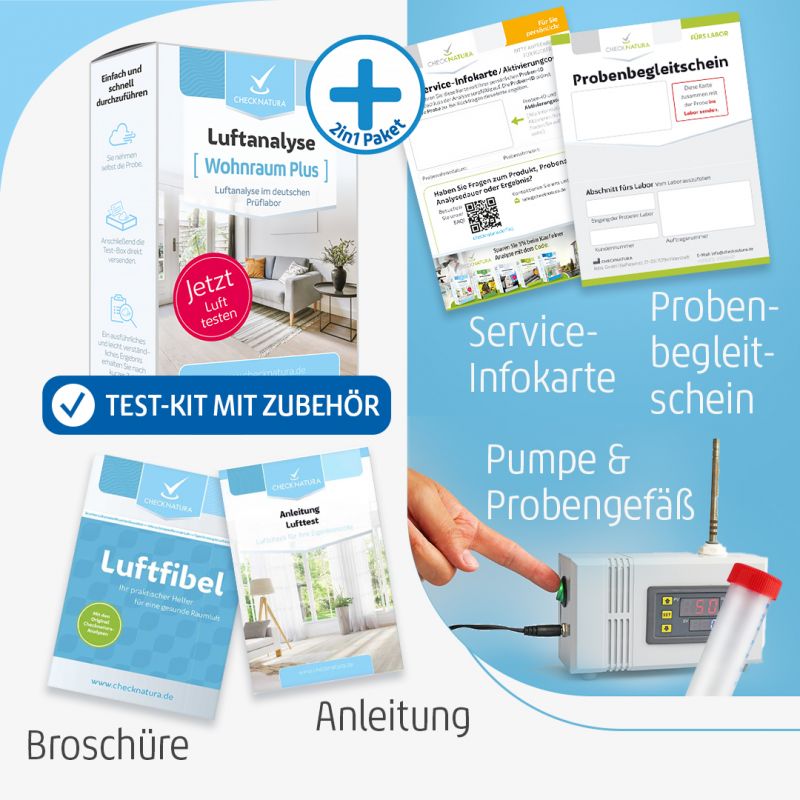 Das Analyse-Paket des Lufttests Wohnraum Plus beinhaltet: